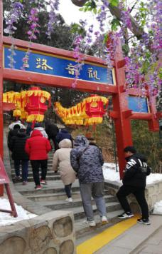 第二天早上9:00點(diǎn),我們團(tuán)體到達(dá)紅螺寺景區(qū),位于北京市懷柔區(qū)城北5公里的紅螺山南麓,距北京市區(qū)55公里,景區(qū)總面積800公頃,國(guó)家AAAA級(jí)旅游區(qū)。始建于東晉咸康四年(公元338)年,原名“大明寺”(明正統(tǒng)年間易名“護(hù)國(guó)資福禪寺”,因紅螺仙女的美妙的傳說,俗稱“紅螺寺”)。紅螺寺坐北朝南,依山勢(shì)而建,布局嚴(yán)謹(jǐn),氣勢(shì)雄偉。現(xiàn)在時(shí)節(jié)三九,北方冰天雪地,此時(shí)攀登由緩緩的山勢(shì)而上,身體慢慢散發(fā)熱量,爬到山頂已經(jīng)是大汗淋漓,站在頂端俯視村莊,遠(yuǎn)眺雁西湖畔、懷柔水庫,高矮錯(cuò)落的房子......心境舒爽。