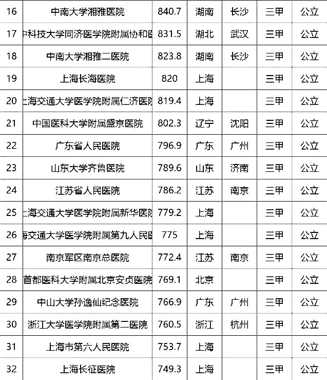 “100強(qiáng)”榜單中,入圍最多的三個(gè)省市分別是北京(16家醫(yī)院)、上海(13家醫(yī)院)、廣東(9家)。“100強(qiáng)”共覆蓋32個(gè)城市,包括4個(gè)直轄市(36家醫(yī)院)、23個(gè)省會城市(59家醫(yī)院)、5個(gè)地級市(5家醫(yī)院)??傮w看,城市的醫(yī)院平均得分和上榜機(jī)構(gòu)數(shù)有一定的相關(guān)性,上榜機(jī)構(gòu)數(shù)多的城市一般得分均值較高,說明這些城市醫(yī)院整體實(shí)力較高。