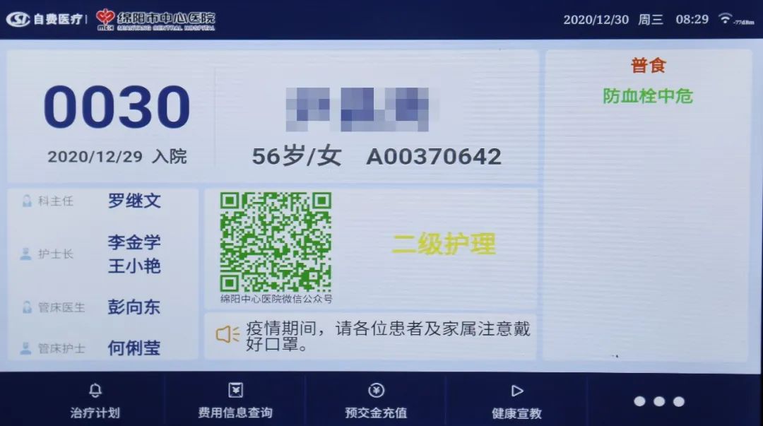 床旁的這塊屏幕作為一套連接護(hù)士站、走廊和病房的系統(tǒng),實(shí)現(xiàn)跨空間的信息互通。不僅有效提升了醫(yī)、護(hù)、患三者溝通時(shí)效,還為患者提供了更多便捷和人性化的服務(wù)。患者輸入密碼可以隨時(shí)隨地查詢費(fèi)用明細(xì),并且還可以床旁掃碼繳費(fèi),減少了患者往返排隊(duì)時(shí)間。